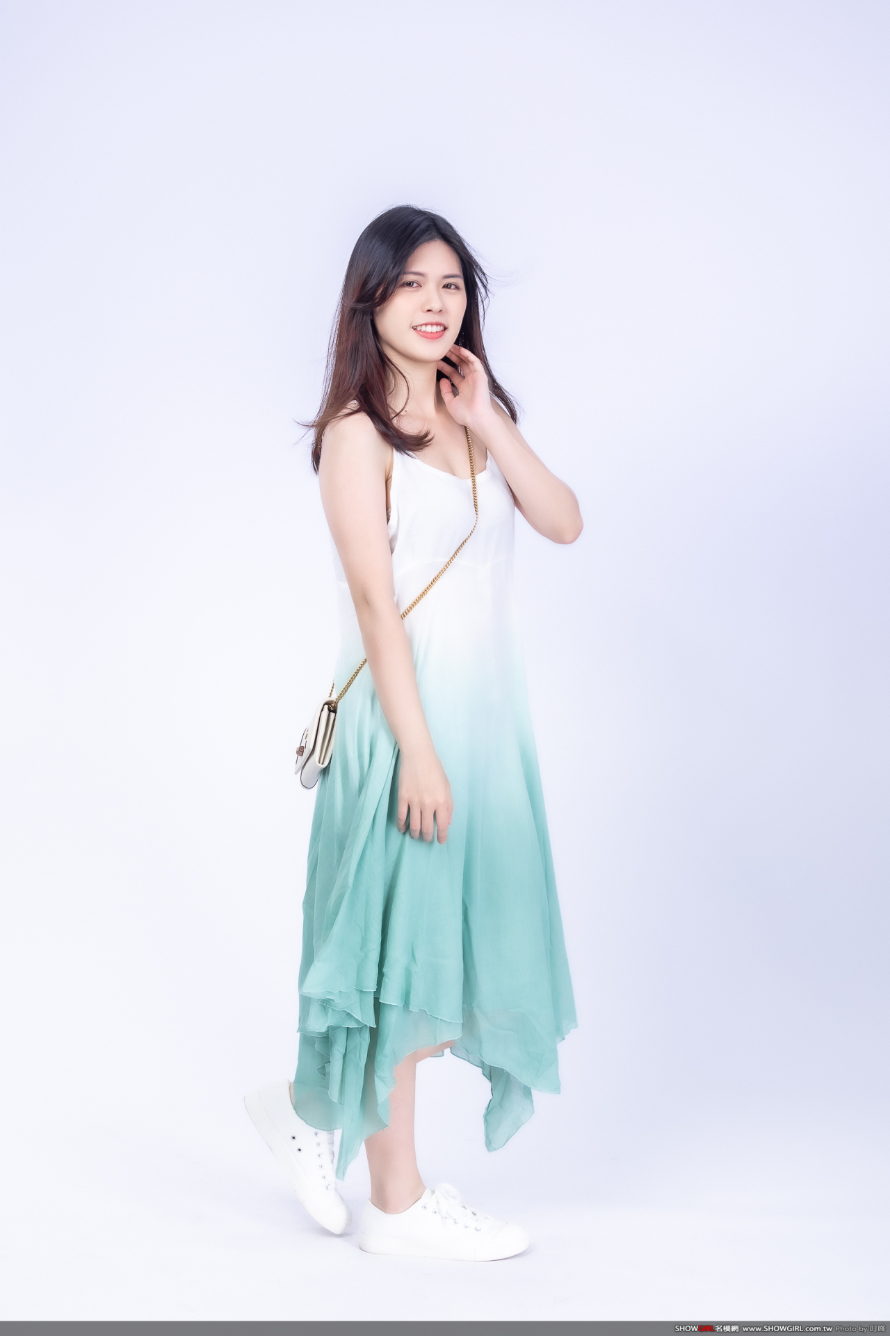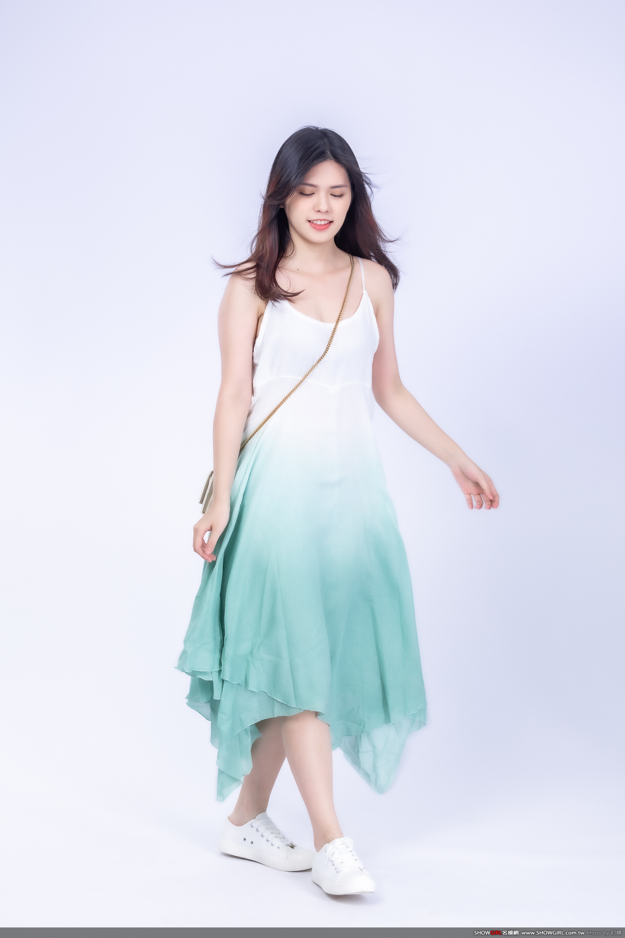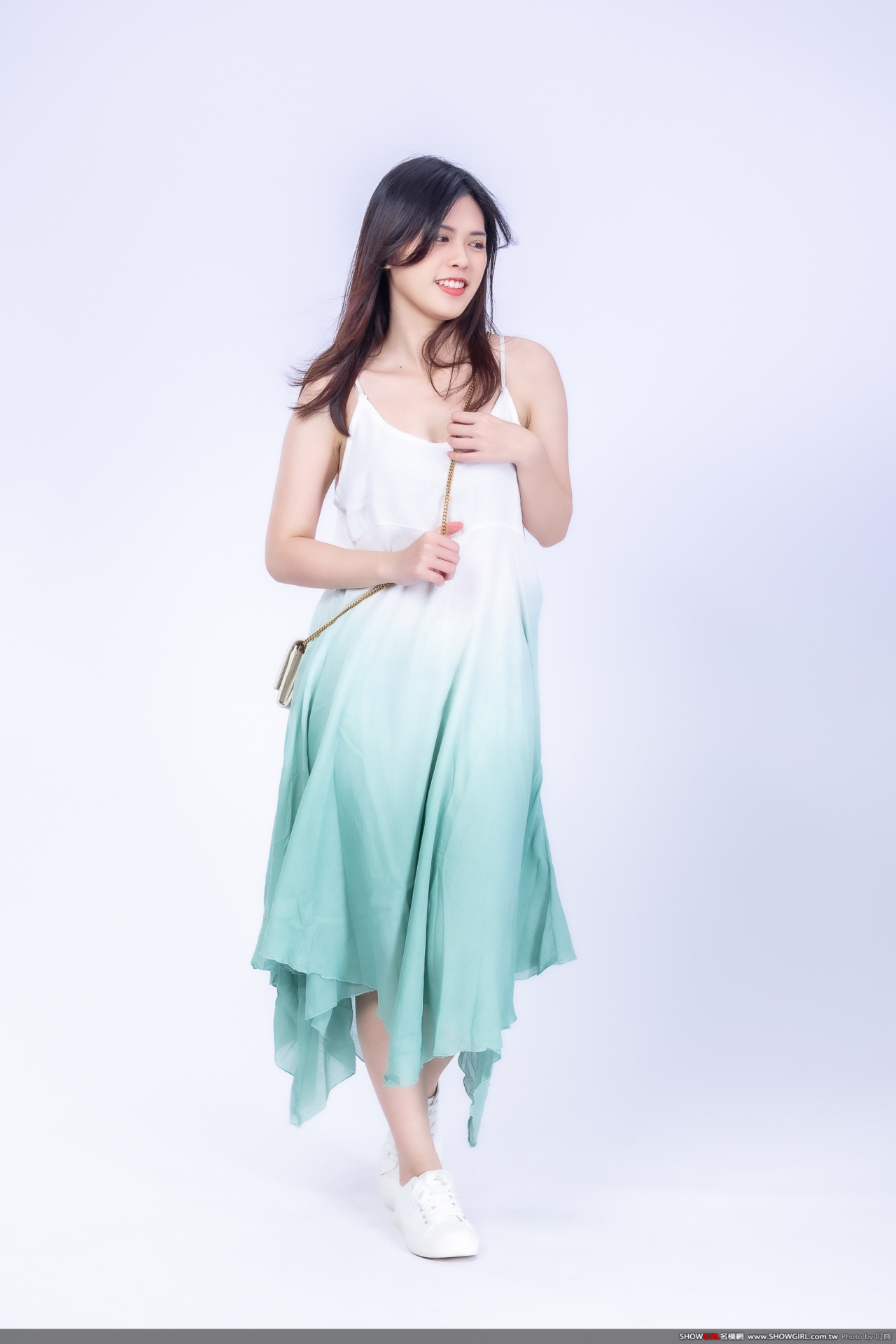 漸層飄染的雪紡紗材質,非常清新脫俗,適合小清新的造型搭配乾淨布鞋就很亮眼!