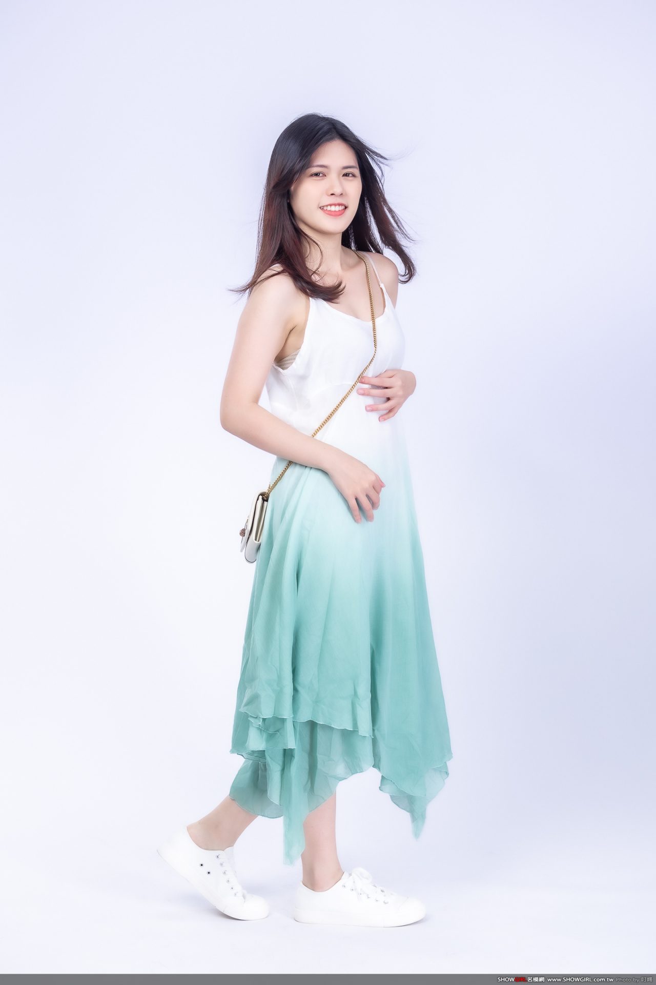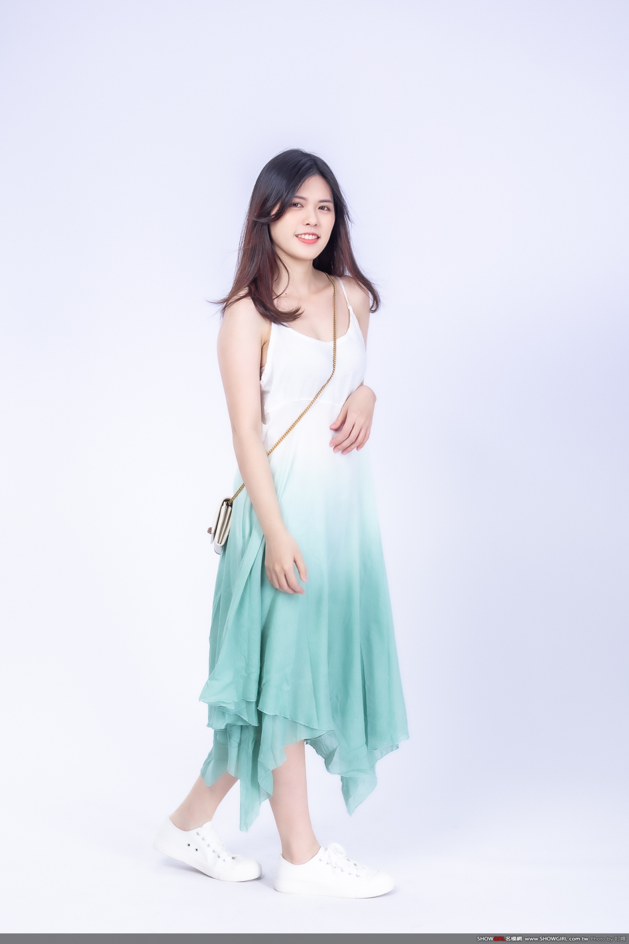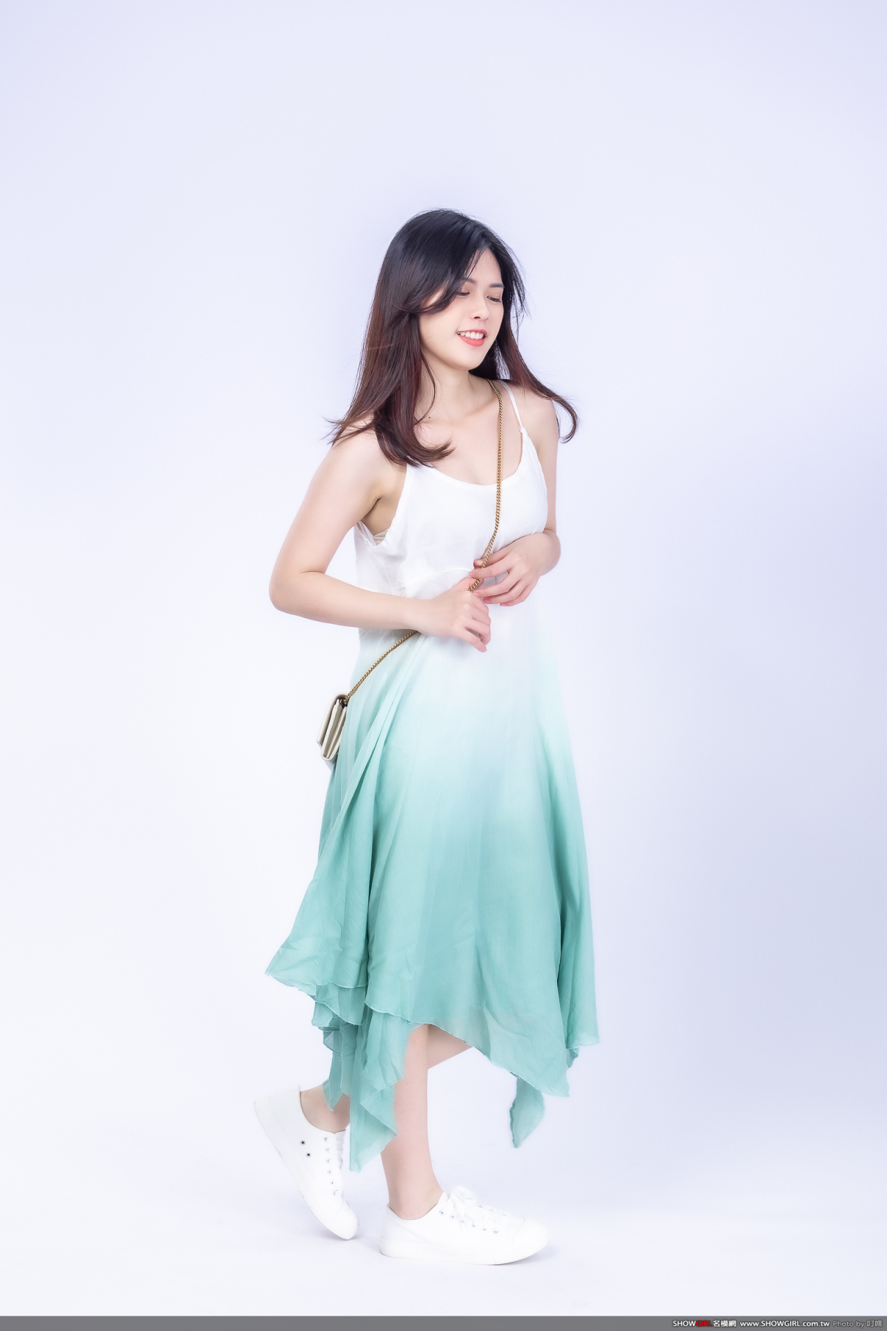 漸層飄染的雪紡紗材質,非常清新脫俗,適合小清新的造型搭配乾淨布鞋就很亮眼!